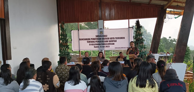 TOMOHON|ProNews.id- Rancangan Peraturan Daerah (Ranperda) Pengelolaan Sampah adalah insiatif dari Komisi 3 DPRD Tomohon. Ini ditegaskan anggota DPRD Tomohon Cherlly Mantiri, SH selaku Narasumber saat mengawali sosialisasi Rancangan Peraturan Daerah (Ranperda) Pengelolaan Sampah yang dilaksanakan oleh Sekretariat Dewan Perwakilan Rakyat Daerah (DPRD) Kota Tomohon di Kelurahan Pangolombian, Kamis (13/7/23).
