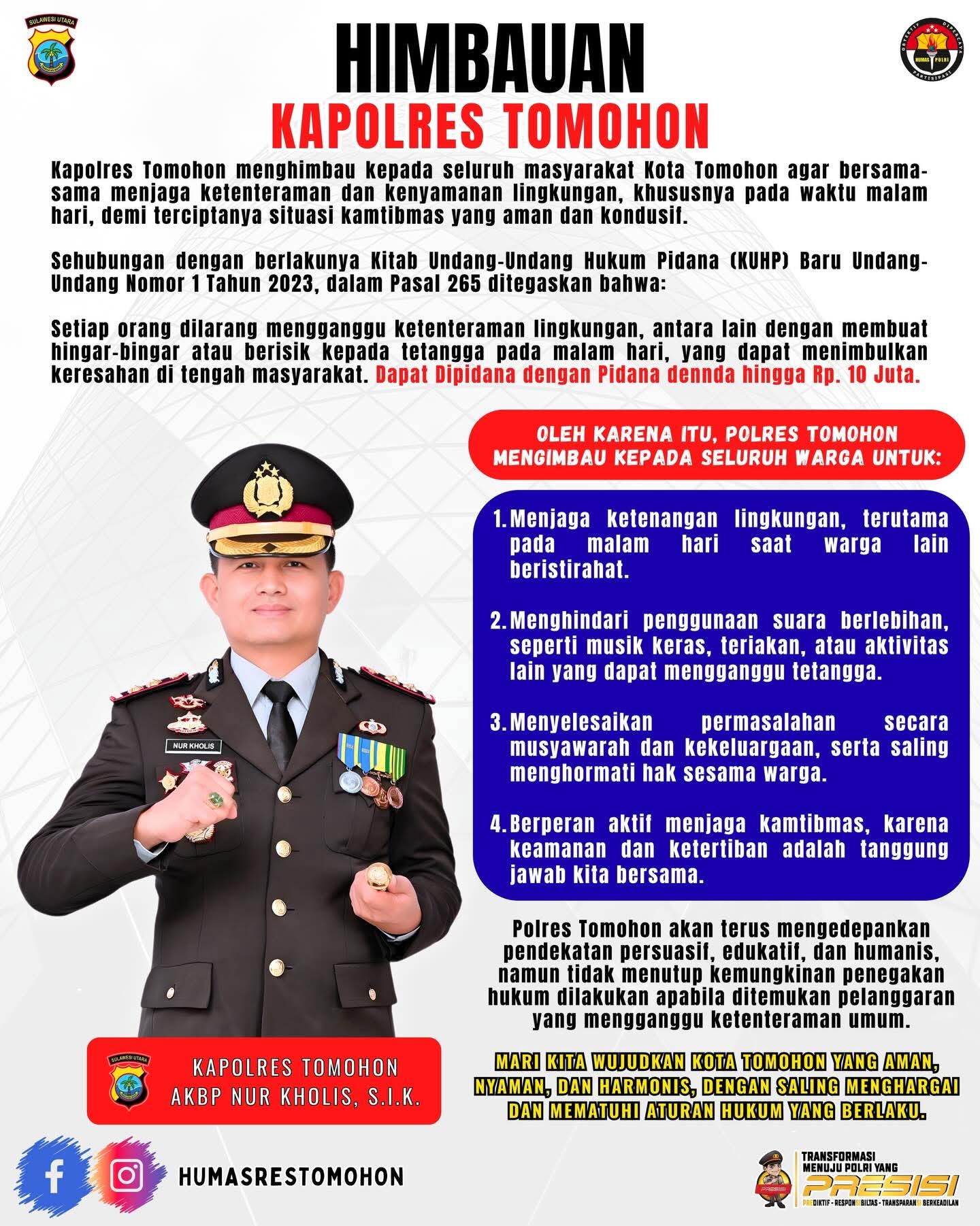 Penangkapan dilakukan Tim Resmob Polres Minahasa dipimpin Kanit Resmob Aipda Suryadi, SH, berdasarkan Laporan Polisi Nomor LP/B/257/VI/2025/SPKT/Polres Minahasa/Polda Sulawesi Utara.